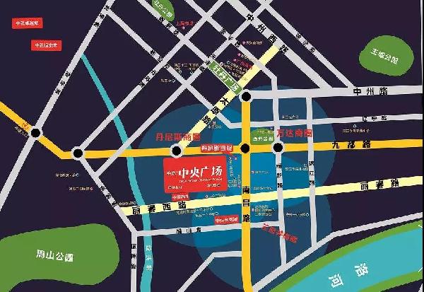 扼守九都路與南昌路兩大道路交通主動脈,丹尼斯、王府井、長申萬達三大商圈環繞,