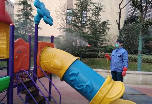 對樓棟大廳、電梯、健身設施、垃圾中轉站等區域進行定點、定時消毒,